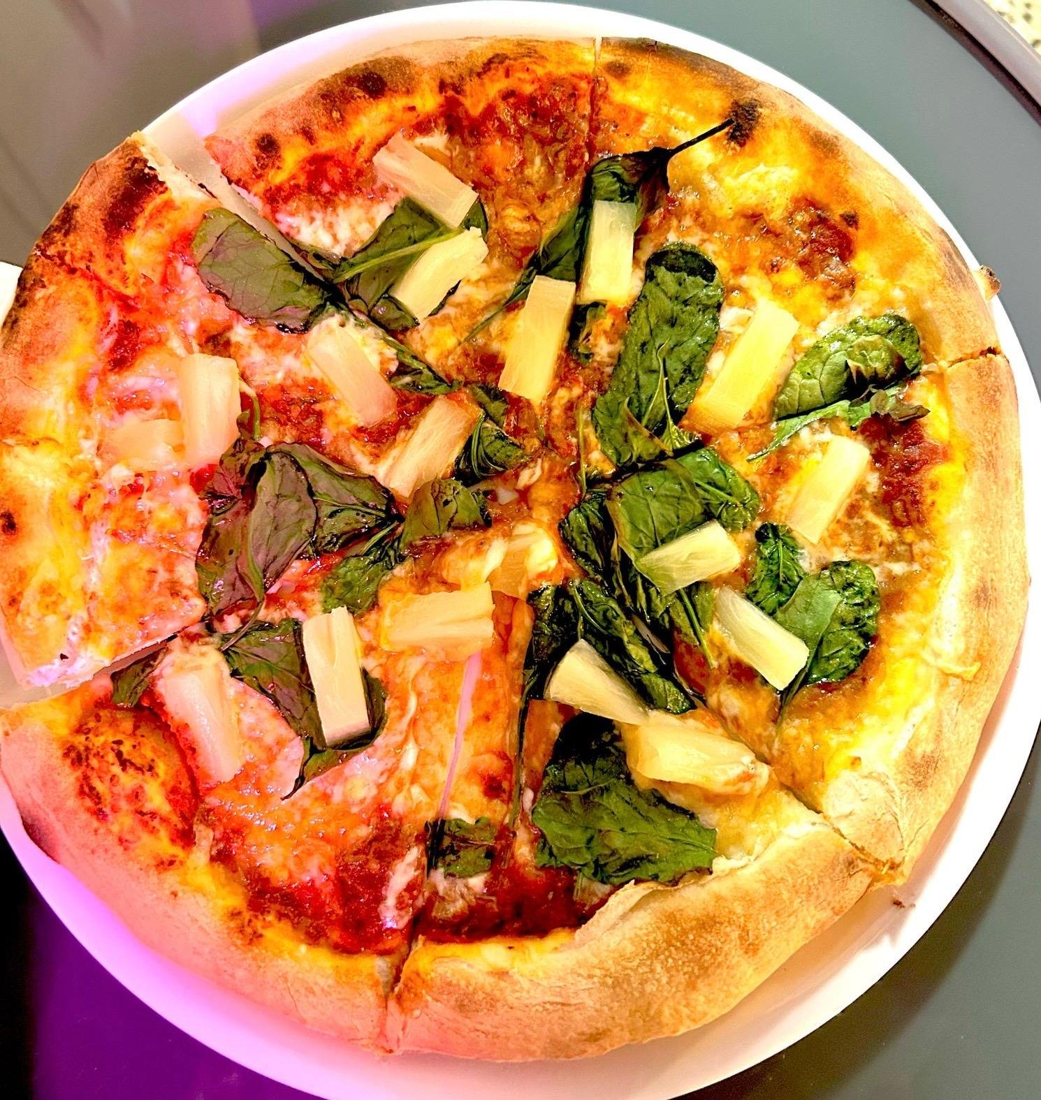 Organic Tomato Sauce, Mozzarella Fiordilatte, Ham, Pineapple and Oregano
